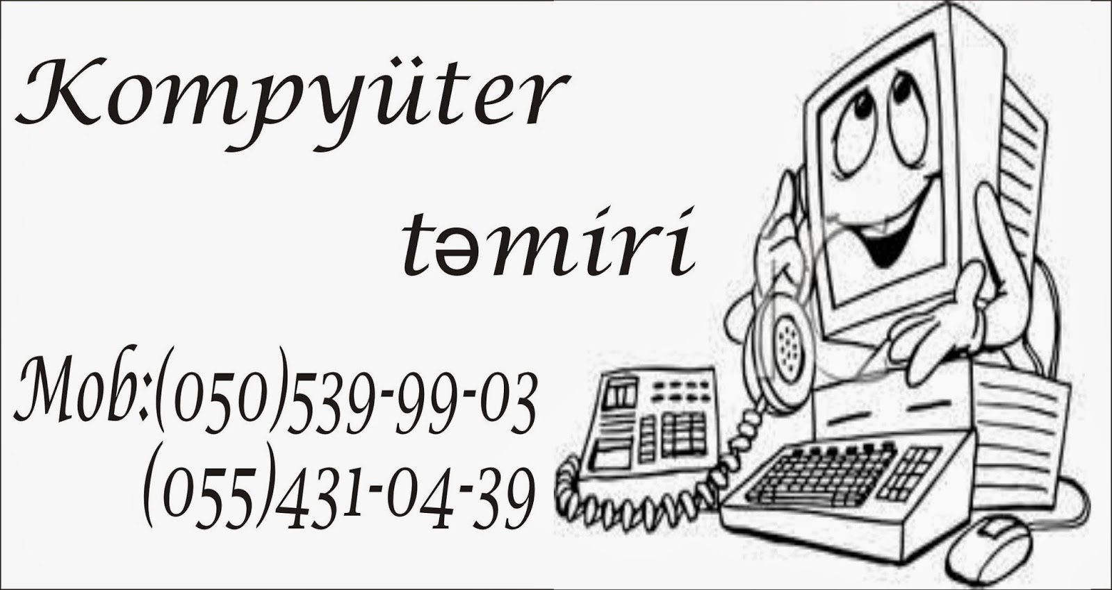Kompüter və notebookların təmiri, bütün proqramların yazılması, notebook hissələrinın (ekran, klaviatura, hard disk, batareya, adaptor və s.) dəyişdirilməsi, kompüter və notebookların profilaktikası,